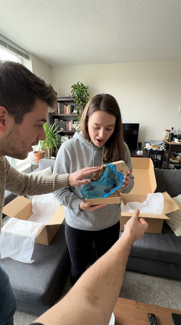 Emballée avec soin, expédiée directement depuis l'atelier. Un morceau d'océan posé dans votre salon.